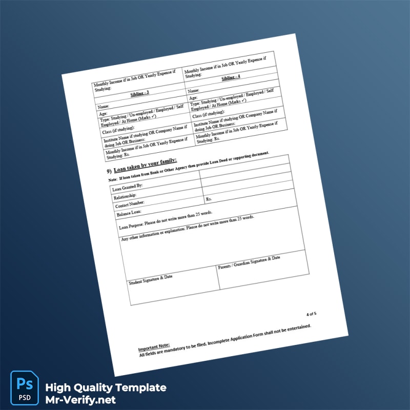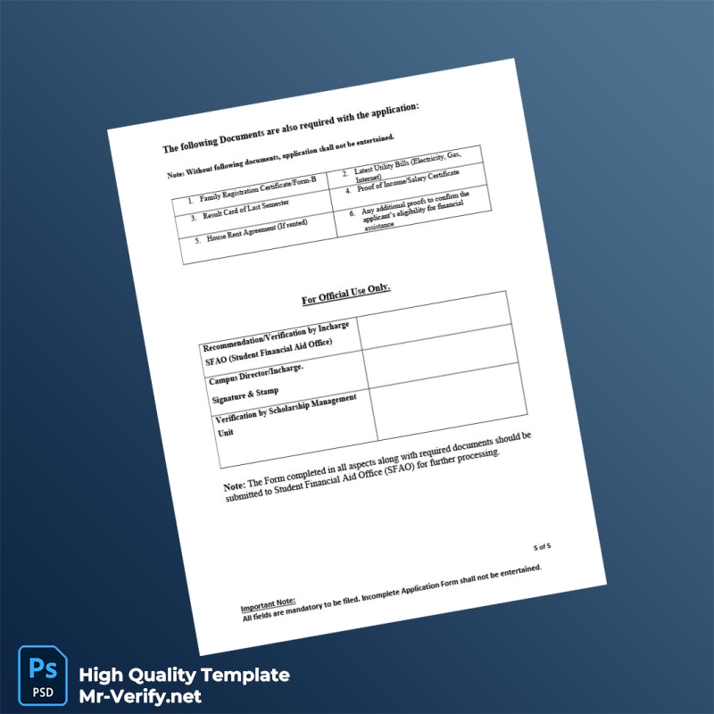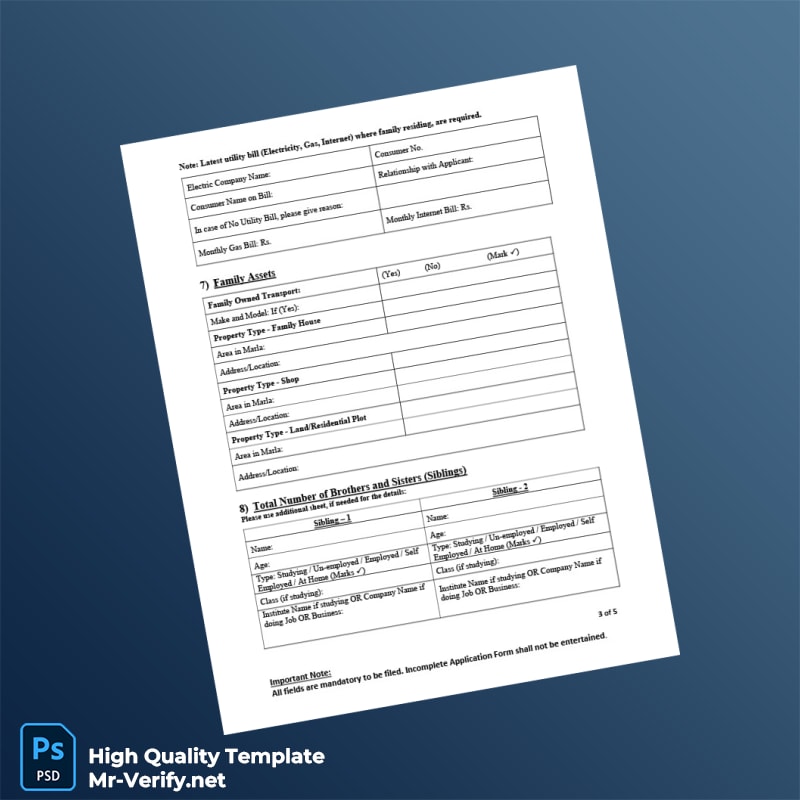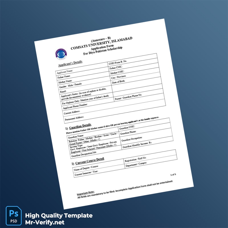 Pakistan COMSATS University Islamabad Editable Diya Pakistan Application Form Template in Word and PDF formats 5 page