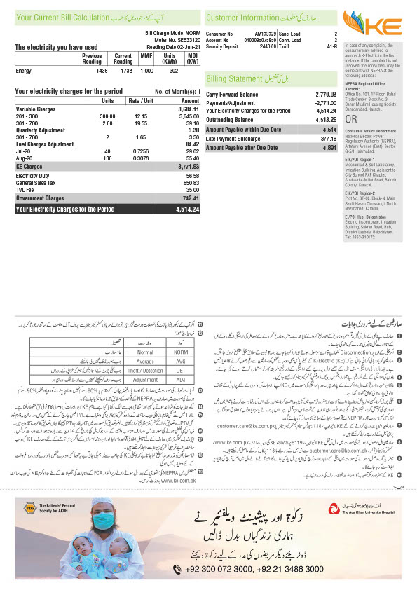 Pakistan K-Electric Editable Electricity Bill Template in Word and PDF formats 2 page