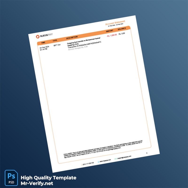 Don’t let the absence of a bank statement hold you back. Equip yourself with the Pakistan NayaPay Account Statement Template today and ensure you have the tools necessary for your financial needs. Download your customizable template now and get started!