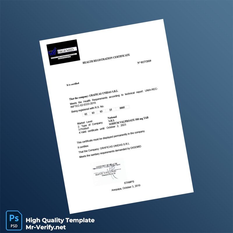 Peru DIGEMID Certificate of Sanitary Registration Template in Word and PDF Formats