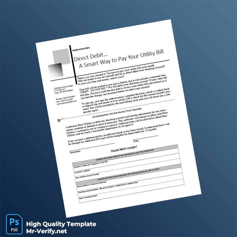Introducing the Peru Peru Utilities Editable Direct Debit Authorization Template in Word and PDF formats—a professional solution designed to simplify your documentation needs. This meticulously crafted template serves as your reliable utility bill proof of address template, offering the perfect blend of flexibility and ease of use for creative and technical professionals alike.