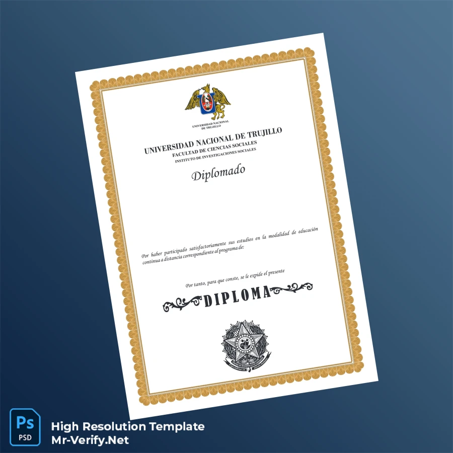 To use the Peru Universidad Nacional de Trujillo Diploma Template, simply download the file post-purchase, open it using any compatible word processor or PDF editor, and customize the relevant fields with your information. Print the certificate on high-quality paper to ensure durability and authenticity. This editable diploma template is an invaluable resource for swift diploma replacement or for creating novelty degree certificates, also functioning well as a high school diploma template or blank university diploma template. Explore more in the collection of Printable Certificate Templates to find complementary designs and templates.