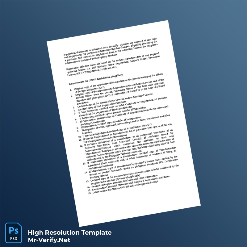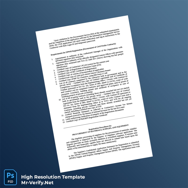 Philippines DPWH Editable Registration Certificate Word and PDF Template