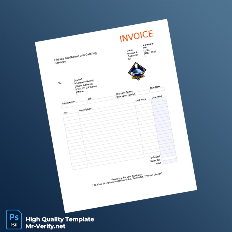 Be the first to review “Philippines Ghitzlie Foodhouse and Catering Services Invoice Template in Word and PDF formats”