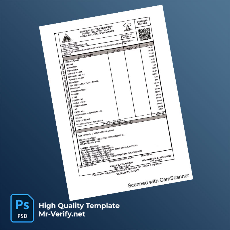 Philippines Quezon City Editable Tax Bill Template in Word and PDF formats