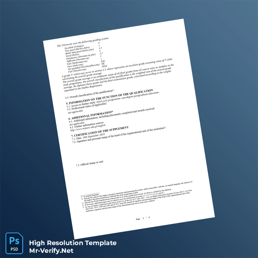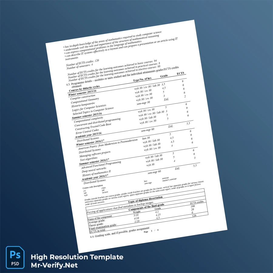 Poland University of Warsaw Master of Science in Computer Science – Editable Diploma Template