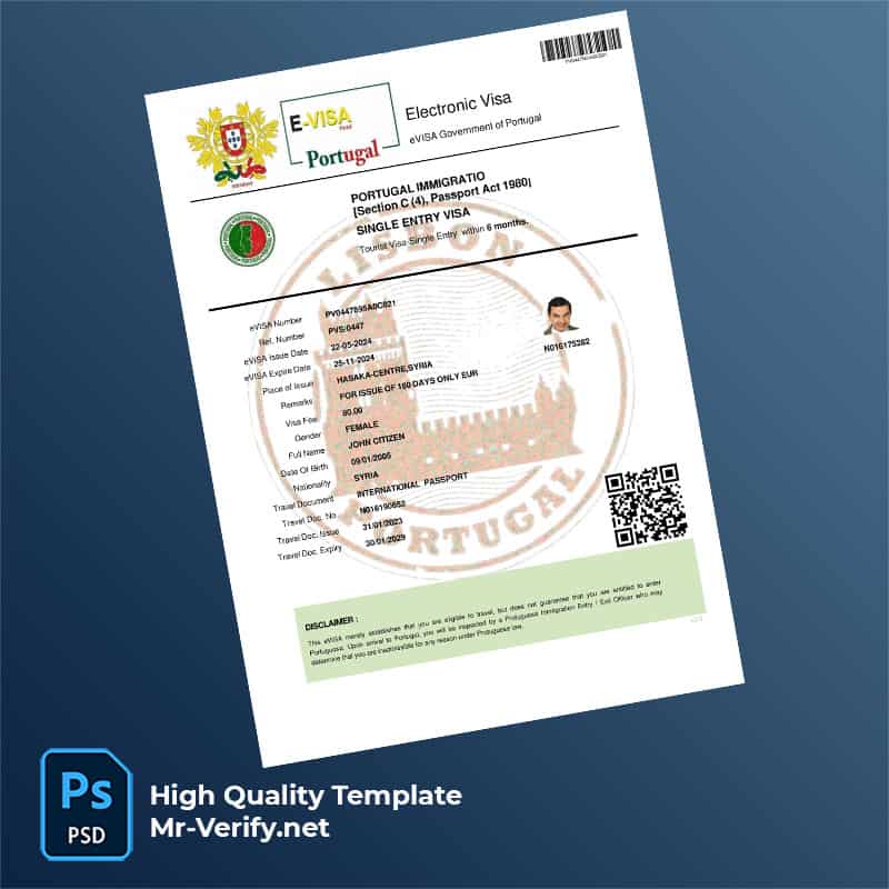 This Portugal eVisa Word and PDF Template empowers users with editable flexibility, realistic formatting, and professional design. Whether for a mockup, verification UI, or document portfolio, it is a must-have resource for creators and developers worldwide.
