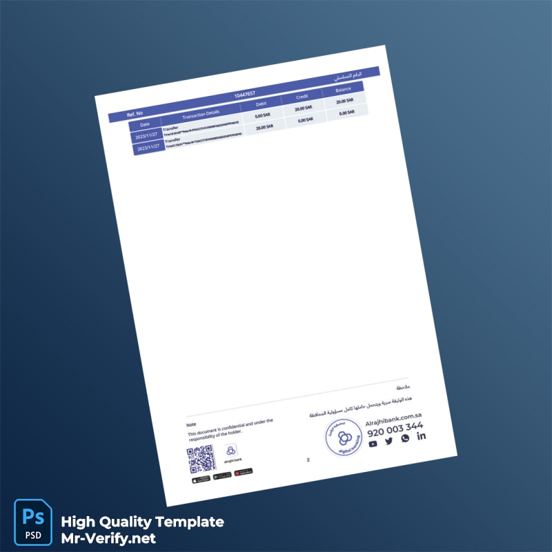 Don’t let the lack of a proper bank statement hinder your progress. Invest in the Saudi Arabia Al Rajhi Bank Account Statement Template today and experience the ease of document management. Enhance your operational efficiency by exploring our related products like the USA Citibank Bank Statement Template and the Thailand Bangkok Bank Statement Template. Get started now and take charge of your banking requirements!