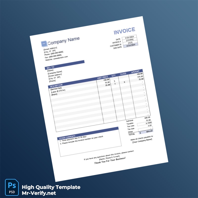 - Blank editable invoice template layout allows you to customize invoices for different transactions with ease.