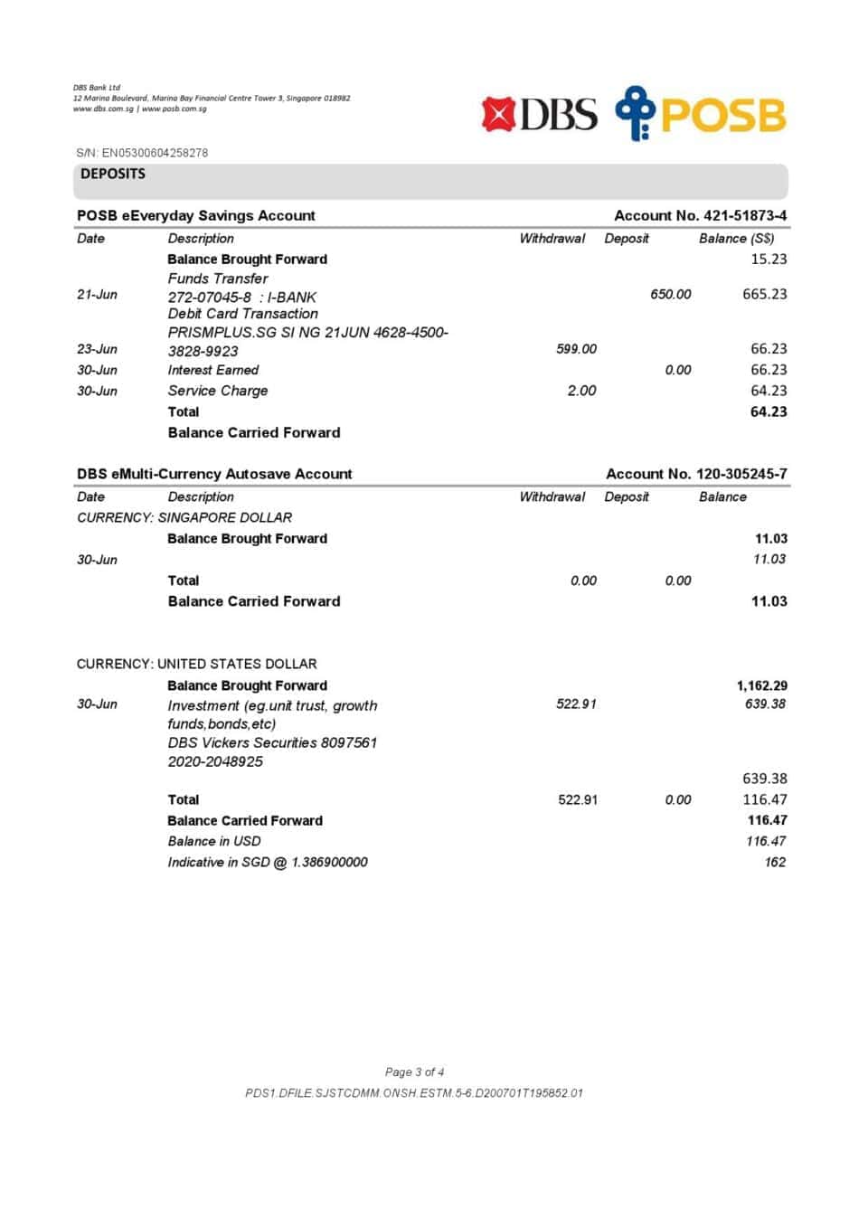 Uses for Singapore DBS Bank Proof of Address Statement Template