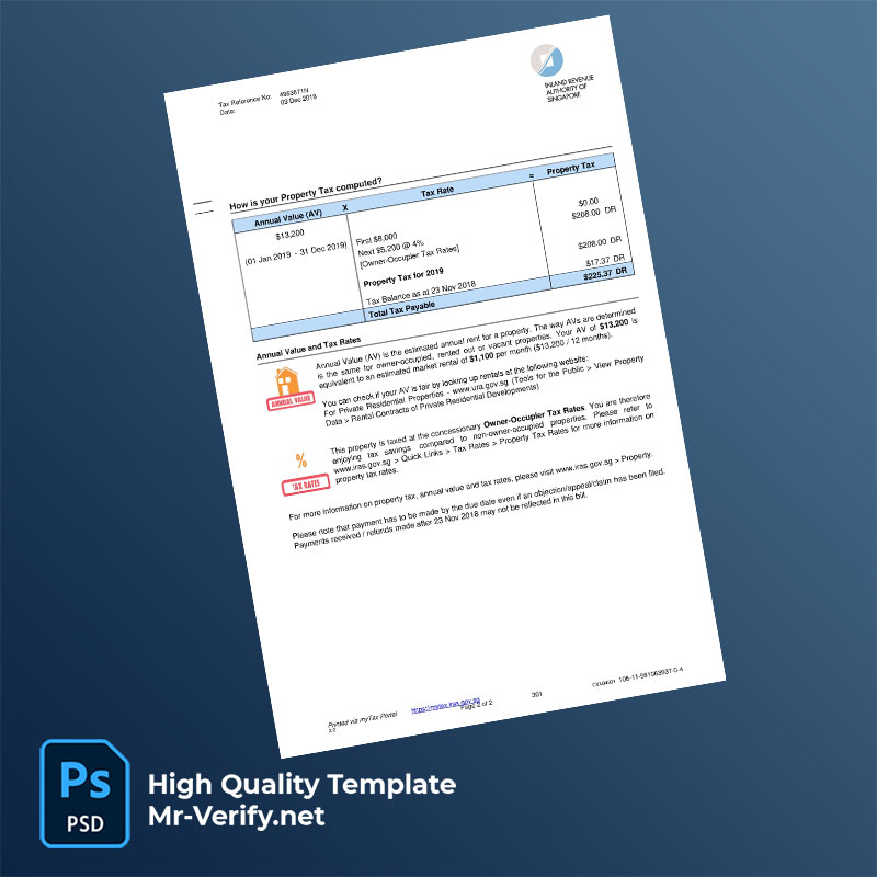 Be the first to review “Singapore Inland Revenue Authority of Singapore Editable Property Tax Bill Template in Word and PDF formats”