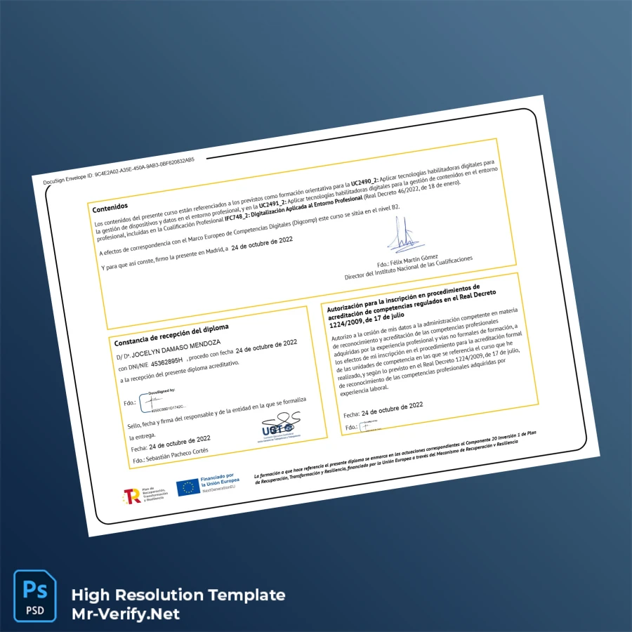 The organized layers and editable text fields allow you to adjust information swiftly without compromising the original layout or quality. This flexibility is particularly valuable for those who need a quick turnaround on professional diplomas or certificates. Additionally, the Spain Unión General de Trabajadores UGT Diploma Certificate offers a sophisticated look that rivals official documents, making it a preferred choice for replacement diploma makers and those in search of novelty degree certificate options. For examples of similar professional templates, explore the fake certificate from University of Oxford template.