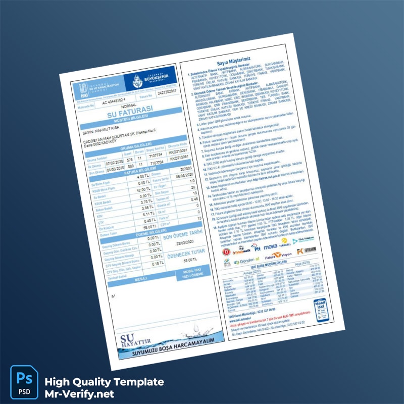 Imagine a scenario where you’ve lost your utility bill and need a new one promptly for an official application. You don’t have time to wait for the provider to send a replacement. With the Turkey Editable Water Bill Template, you gain immediate access to a customizable document ready for modifications. This utility bill proof of address template is ideal for anyone needing a reliable and professional solution.