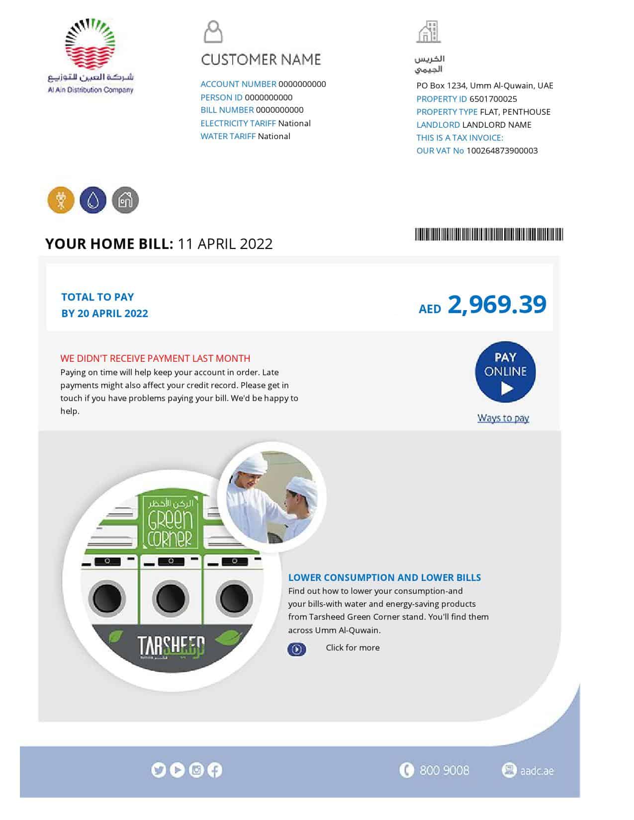 UAE Ajman Al Ain Distribution Co Editable Utility Bill Template (Word & PDF)