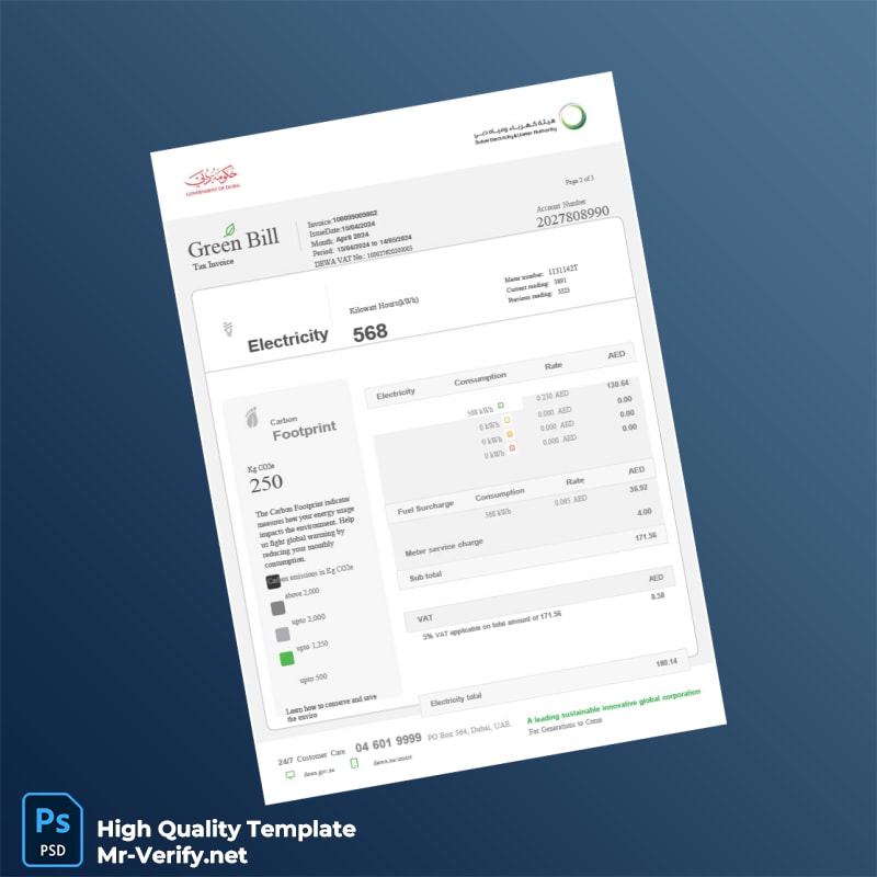 UAE DEWA Editable Electricity Bill Template in Word and PDF formats