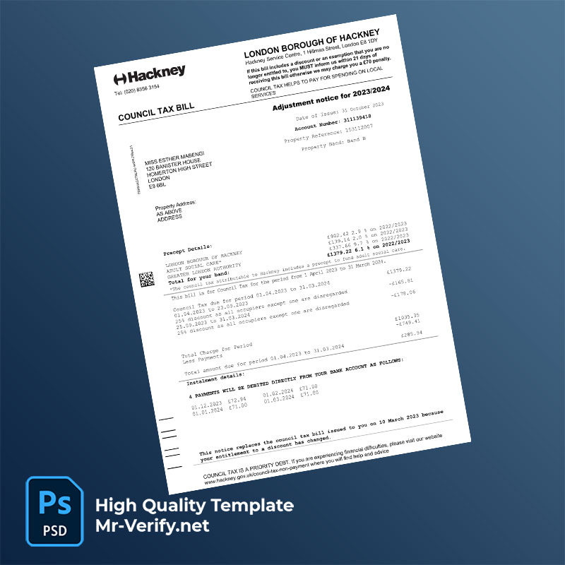 UK Hackney Council Editable Council Tax Bill Template in Word and PDF formats