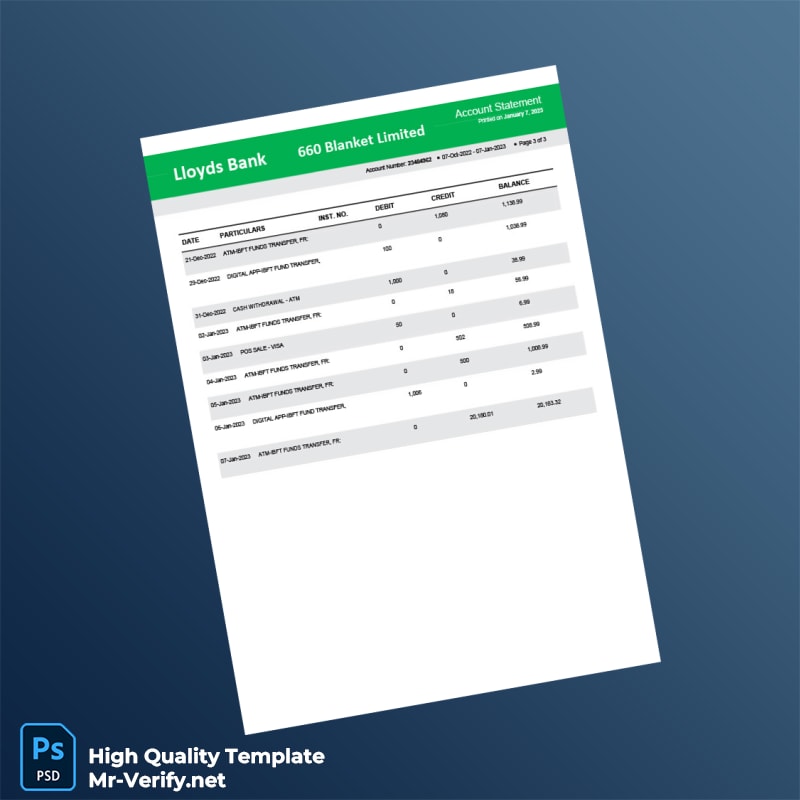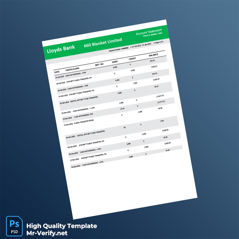 Don’t let a missing bank statement hold you back. Download the UK Lloyds Bank Bank Statement Template today and regain control over your financial documentation. Your solution is just a click away!