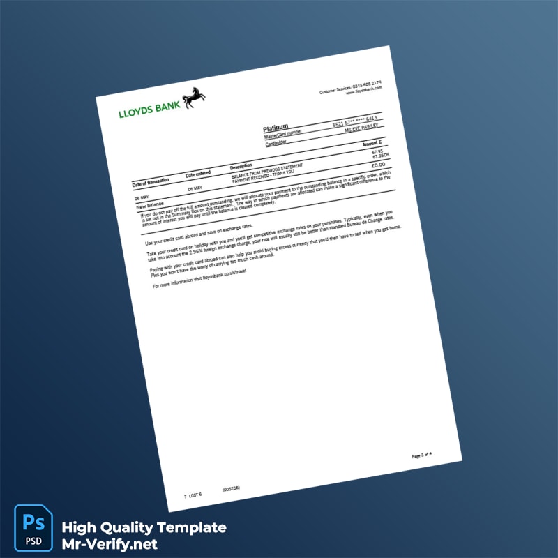 UK Lloyds Bank Statement Template in Word and PDF formats