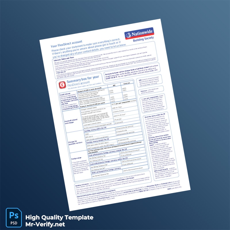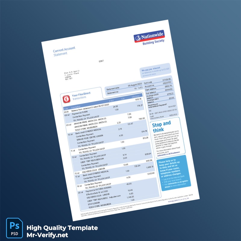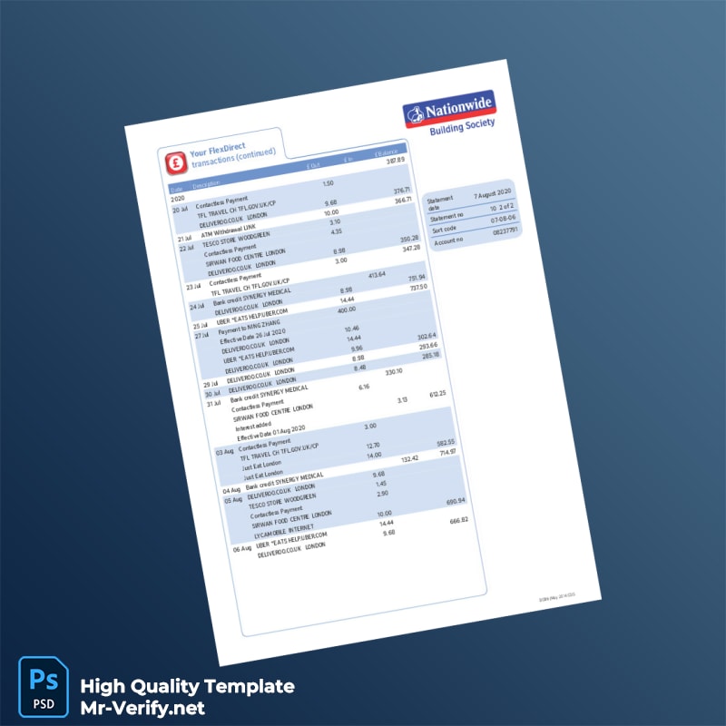 UK Nationwide Bank Statement Template in Word and PDF formats 4 page