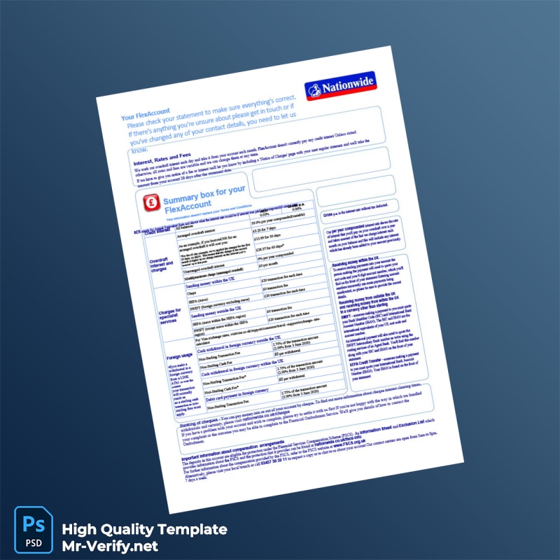 UK Nationwide Building Society Bank Statement Template in Word and PDF Formats