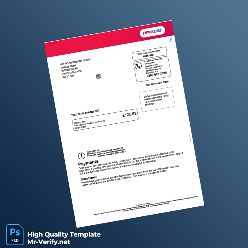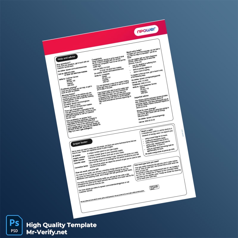 Looking for a quick and reliable way to prove your address? The UK Npower Editable Energy Bill Template offers a seamless solution for professionals in urgent need of documentation. With this template, you can effortlessly modify essential details such as your name, address, and billing information to suit your specific requirements.