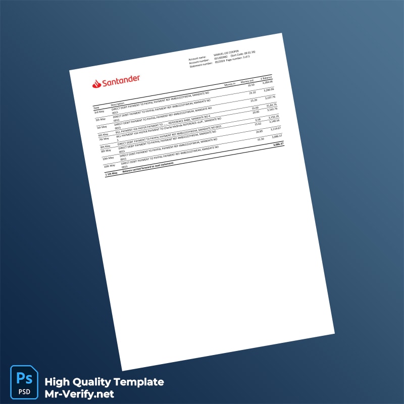 Don’t let incomplete documentation stand in your way. Obtain the UK Santander Bank Statement Template today and secure your financial needs effortlessly!