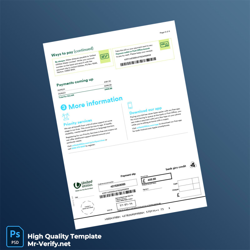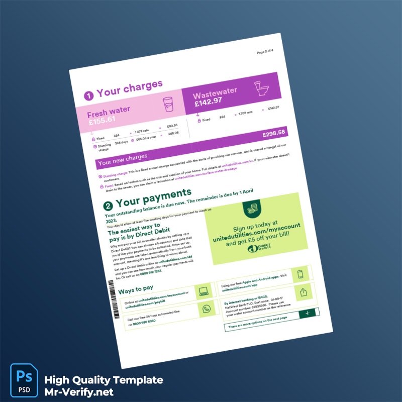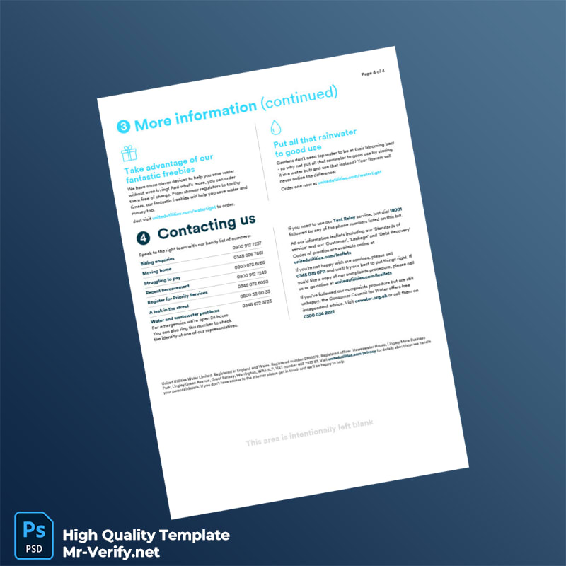UK United Utilities Editable Water Bill Template