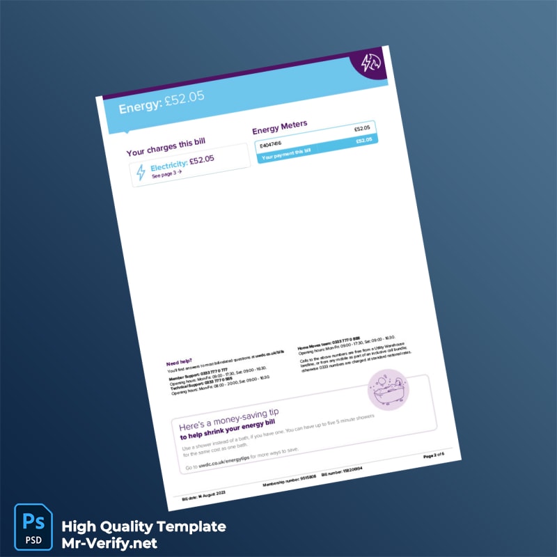 UK Utility Warehouse Ltd Editable Energy Bill Template