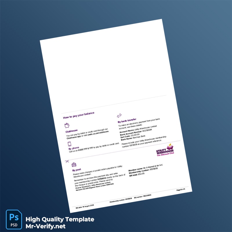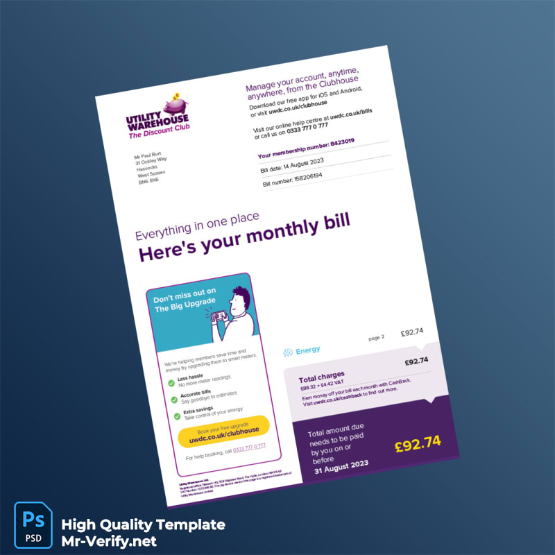 Are you in need of a reliable, professional-grade utility bill proof of address template? The UK Utility Warehouse Ltd Editable Energy Bill Template in both Word and PDF formats is your perfect solution. Designed to meet the highest standards of clarity and detail, this template empowers professionals who require quick and easy access to editable utility documentation.