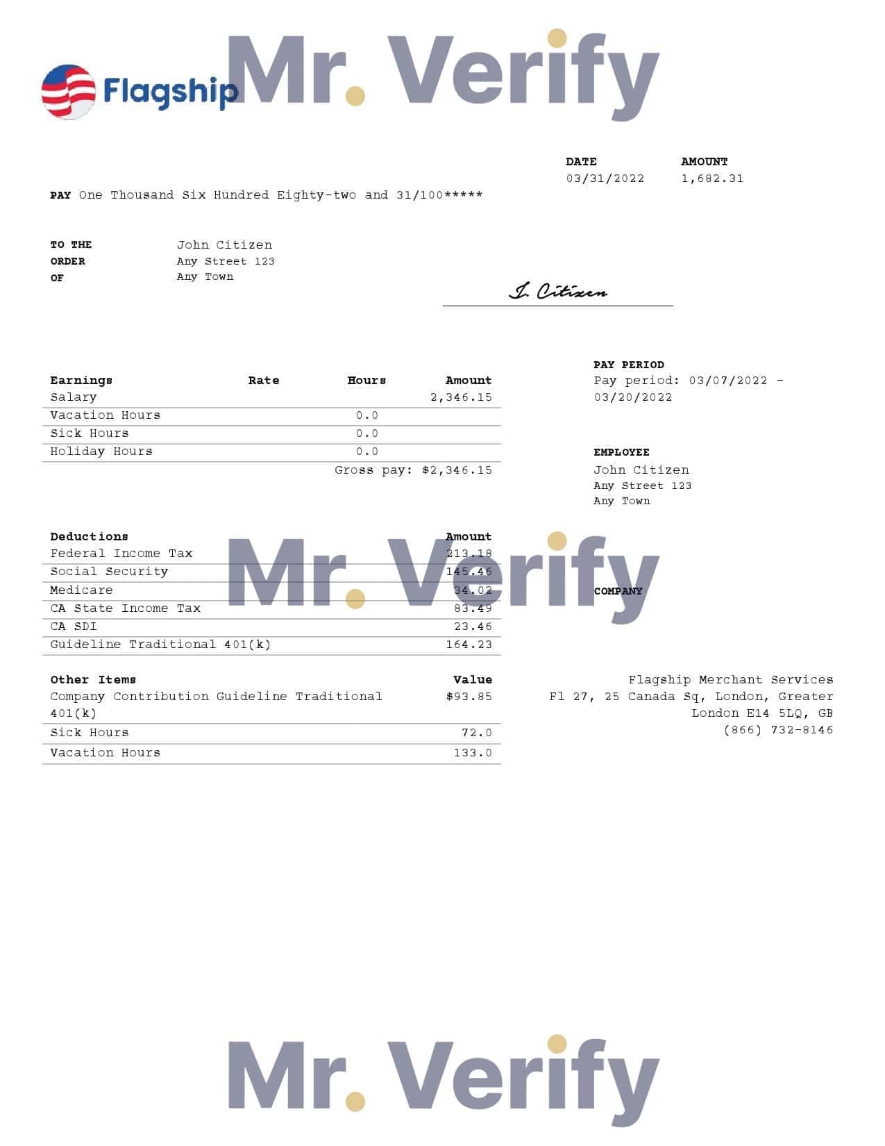 United Kingdom Flagship Merchant Services credit card service company Word Fillable Pay Stub Proof :