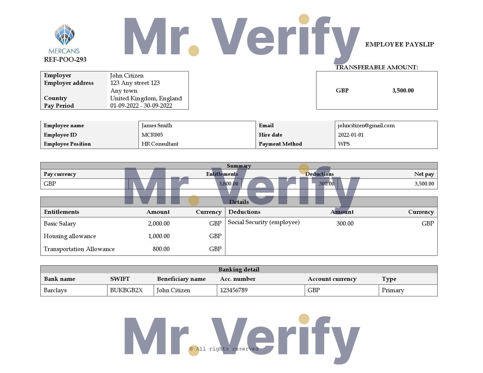 United Kingdom Mercans Global Payroll Solutions & Services payroll company Word Fillable Pay Stub Proof :