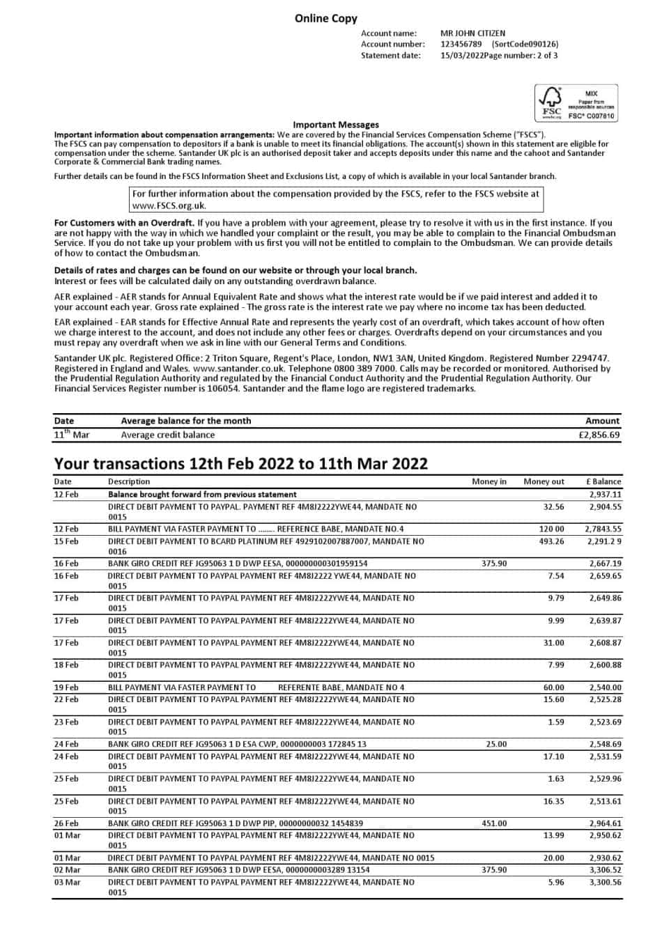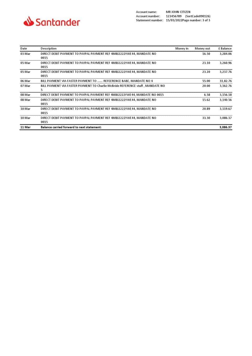 United Kingdom Santander Bank Statement Template – Editable Word Document