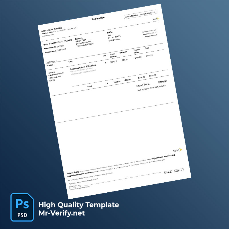 United States Sprint River Mall Editable Tax Invoice Template in Word and PDF formats