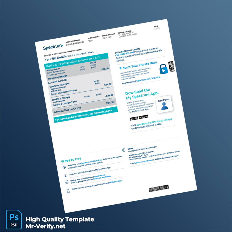 Imagine this: you’ve just moved into a new apartment, but your utility bill is nowhere to be found. You need to provide proof of address for your new job, and time is running out. Enter the US Spectrum Utility Bill Template. With its easy-to-edit features, you’ll be able to replace missing documents in no time. You can seamlessly personalize every detail—from name to address—ensuring accuracy and professionalism.