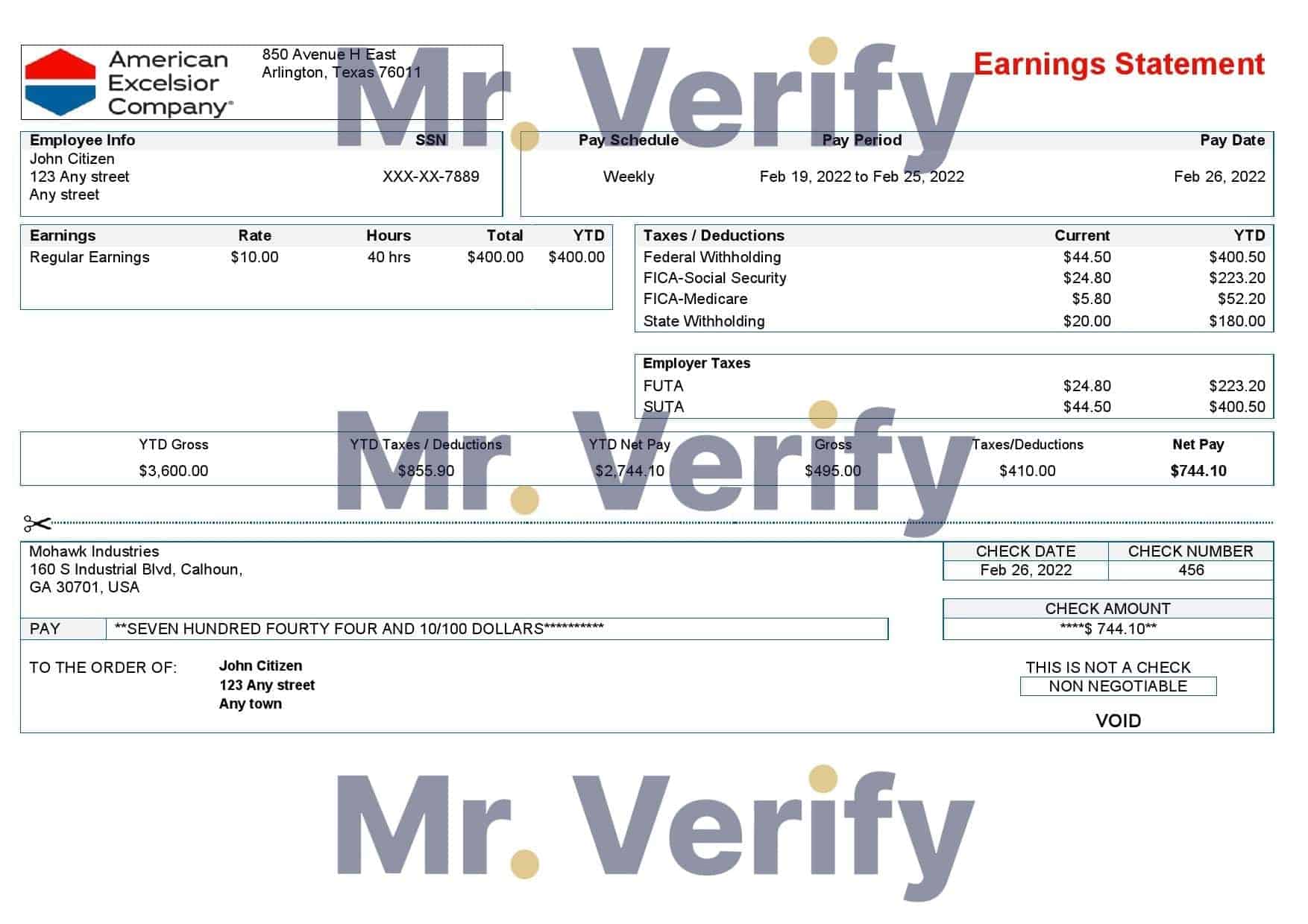 USA American Excelsior distribution company Word Fillable Pay Stub Proof :
