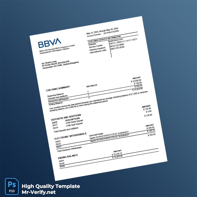 The USA BBVA Checking Account Statement Template is your ultimate solution for effortlessly managing and replicating bank documents. This editable template, available in Word and PDF formats, is designed for professionals facing urgent needs such as replacing lost documents or providing proof of address for various services.
