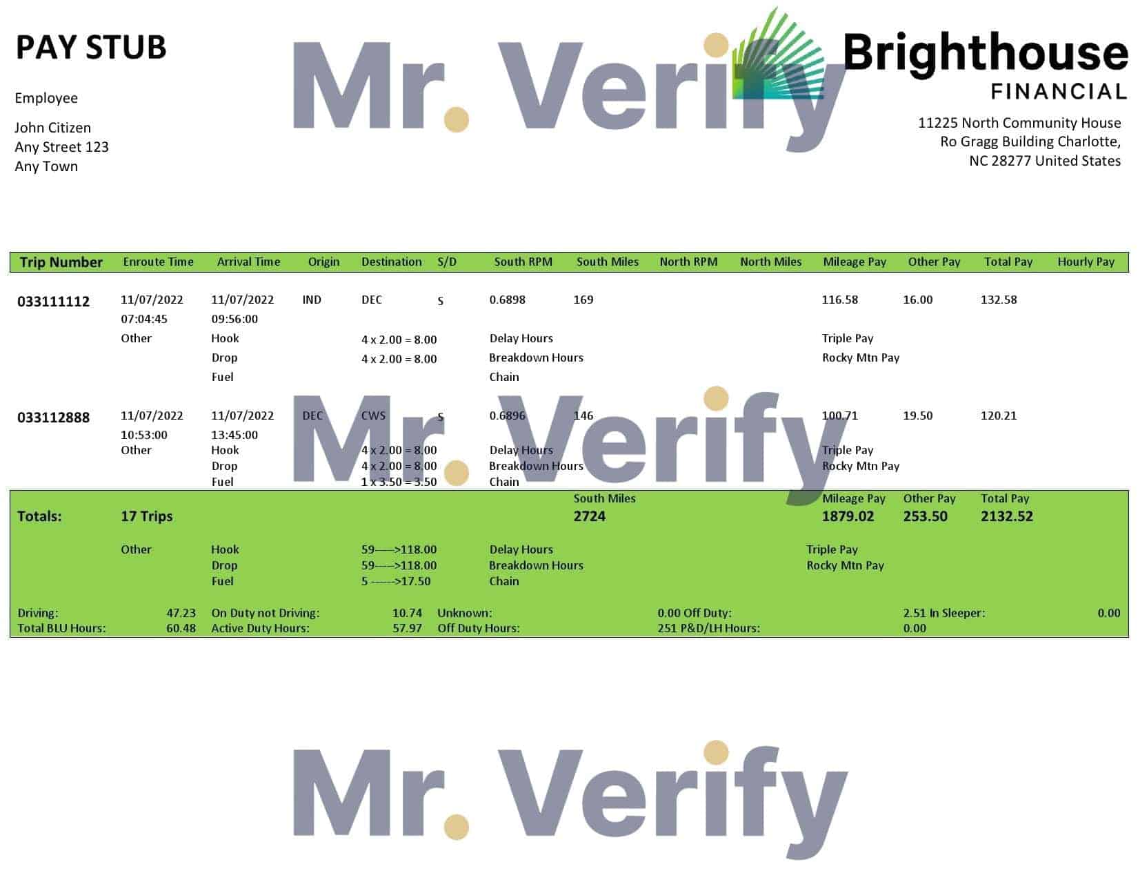 USA Brighthouse Financial financial company Word Fillable Pay Stub Proof :