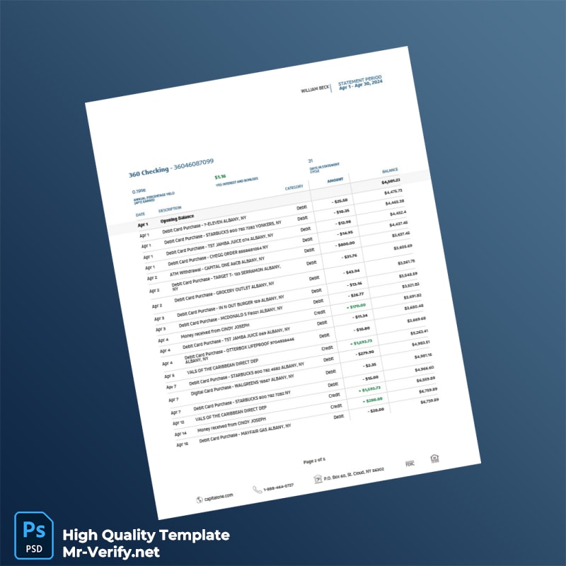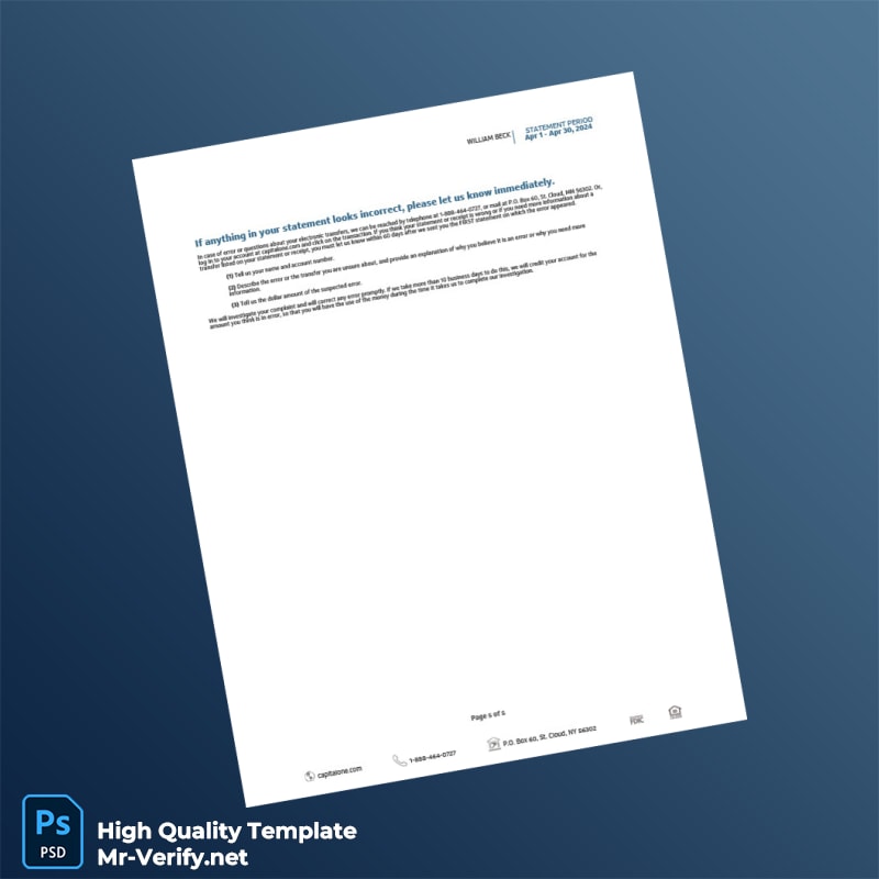 USA Capital One Bank eStatement Template in Word and PDF formats 5 page