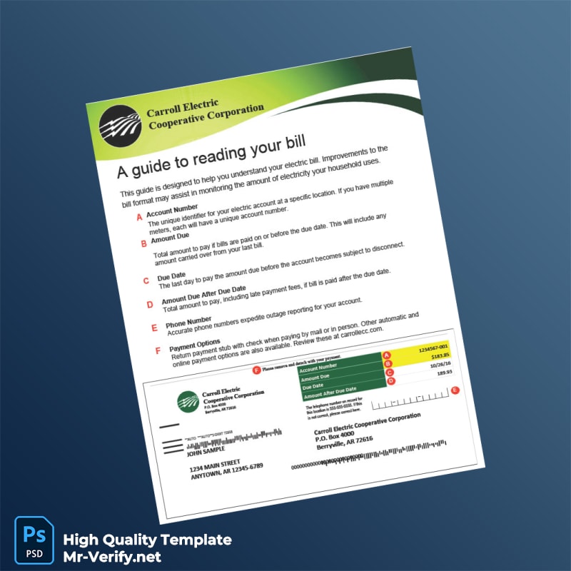 Be the first to review “USA Carroll Electric Cooperative Corporation Editable Electricity Bill Template in Word and PDF formats 2 page”