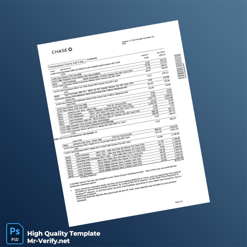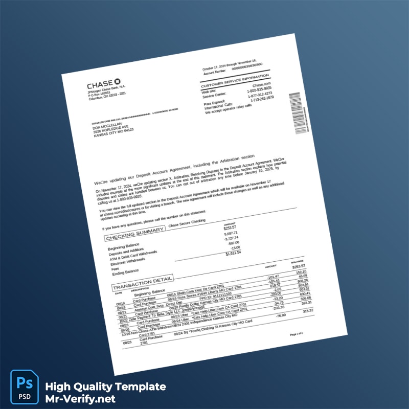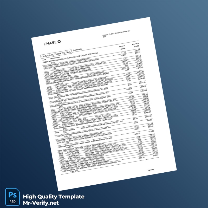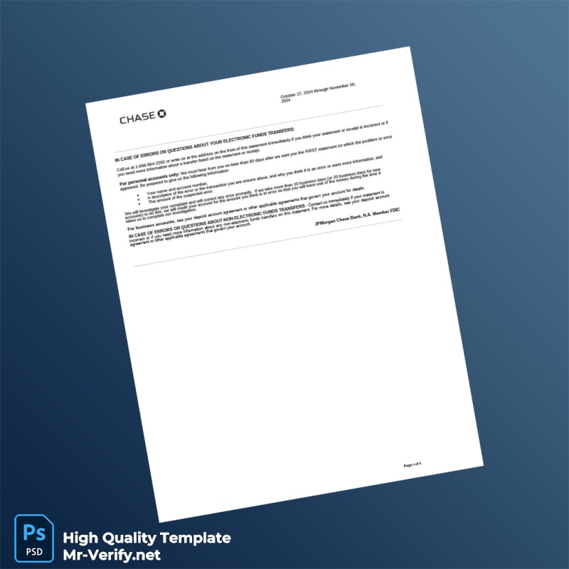 This USA Chase Bank Statement Template addresses the core pain points faced by busy professionals: the urgency of obtaining necessary documentation without compromising on quality or detail. Whether you are dealing with a last-minute application or correcting previous banking discrepancies, this template is designed to streamline the process.