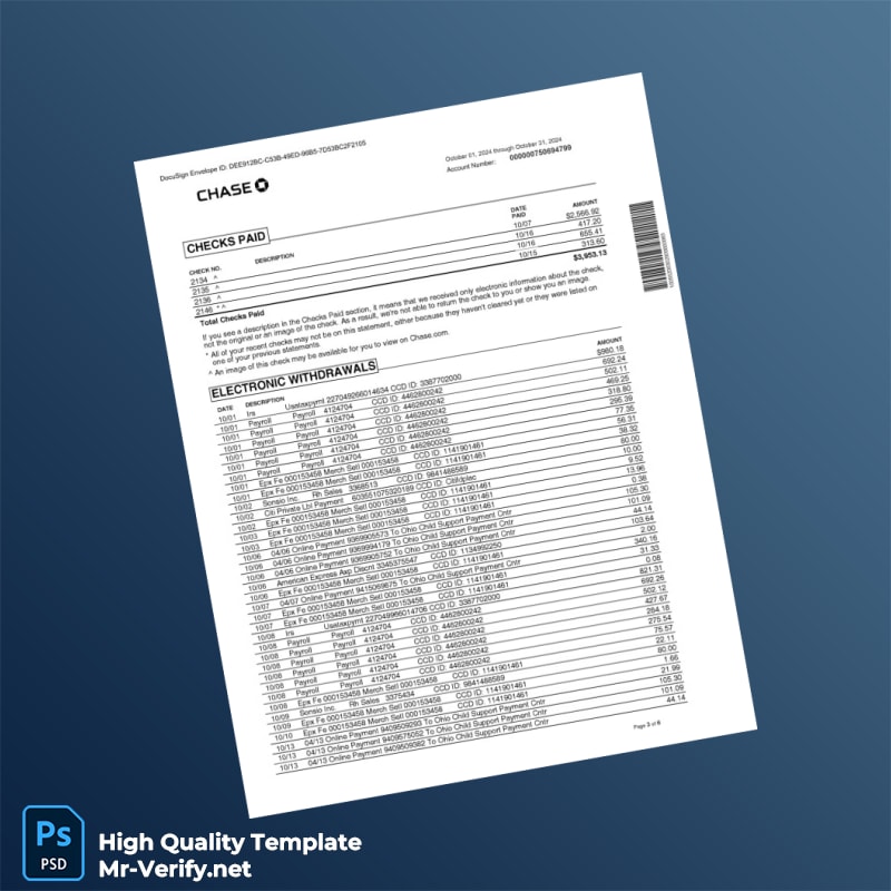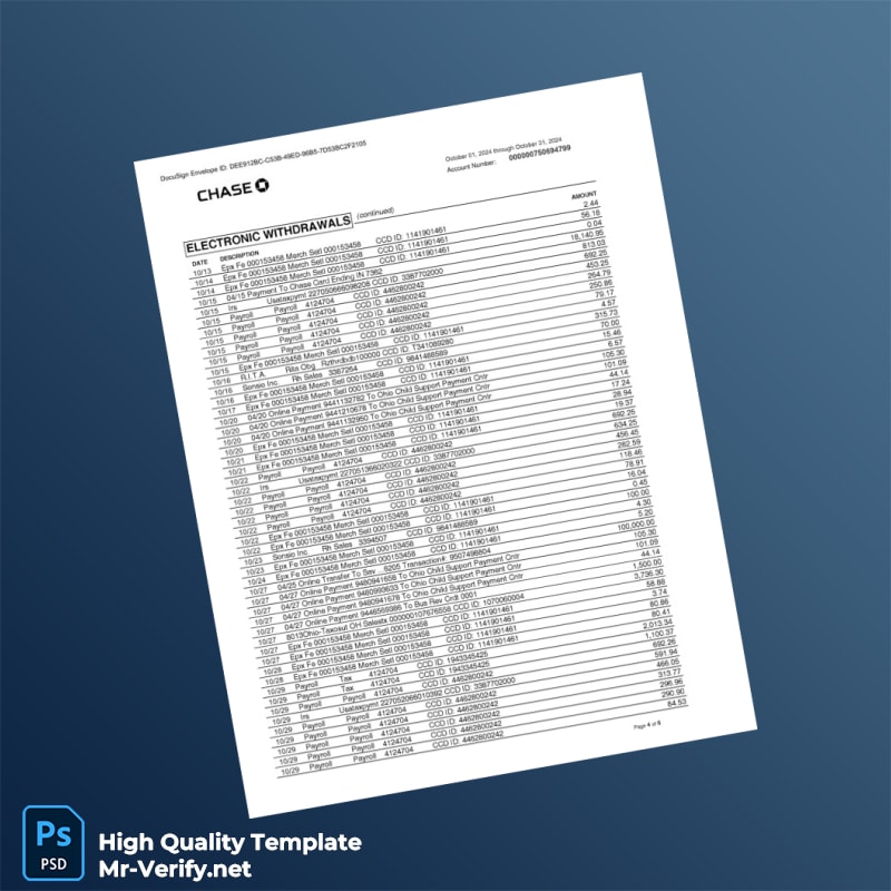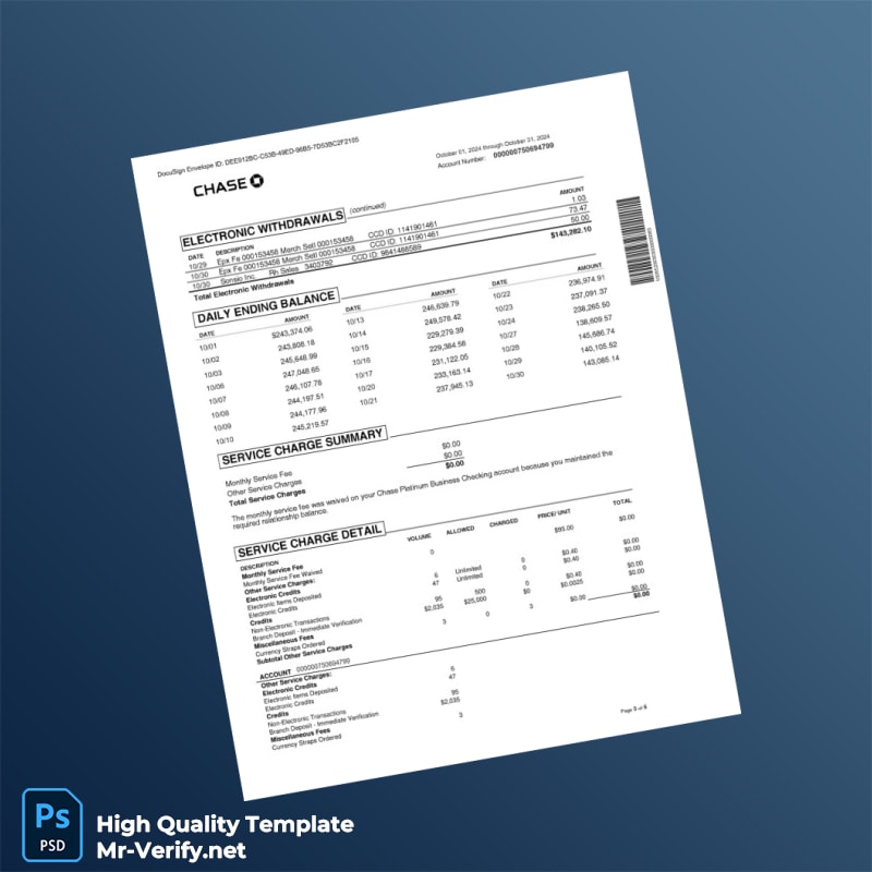 USA Chase Business Bank Statement Template in Word and PDF Formats