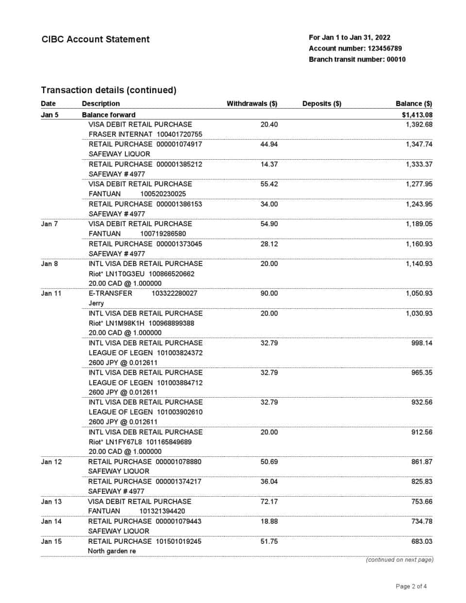 Upon purchase, you’ll be able to immediately download the USA CIBC bank statement .doc file and fonts.