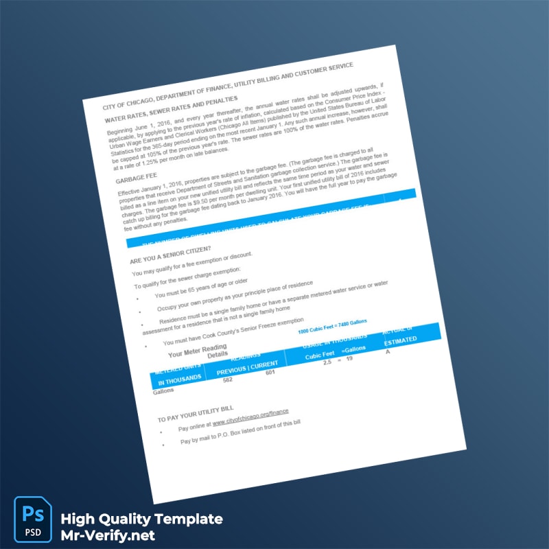 Are you in need of reliable proof of address documentation? The USA City of Chicago Editable Water Bill Template is your perfect solution. Designed for both personal and professional use, this versatile template allows you to create an authentic-looking utility bill quickly and efficiently, available in both Word and PDF formats.
