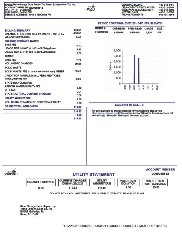 USA City Of Scottsdale Editable Water Bill Template