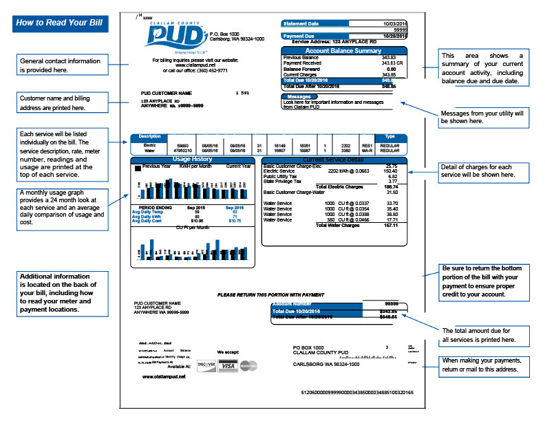 USA Clallam PUD Editable Utility Bill Template