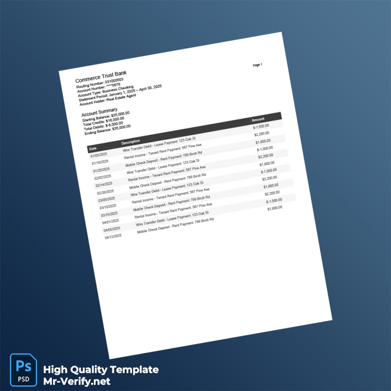 Our USA Commerce Trust Bank Bank Statement Template comes packed with features that cater to your unique requirements: