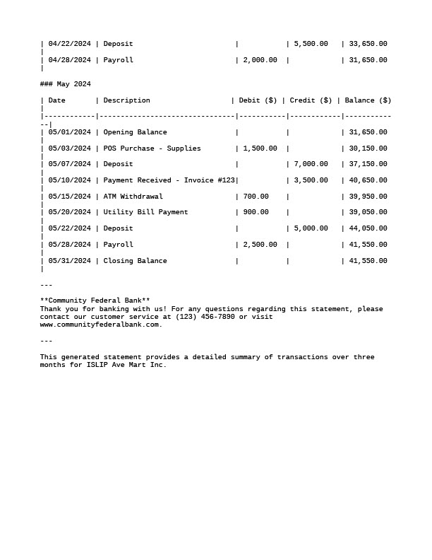 USA Community Federal Bank Editable Account Statement Template in Word and PDF Formats