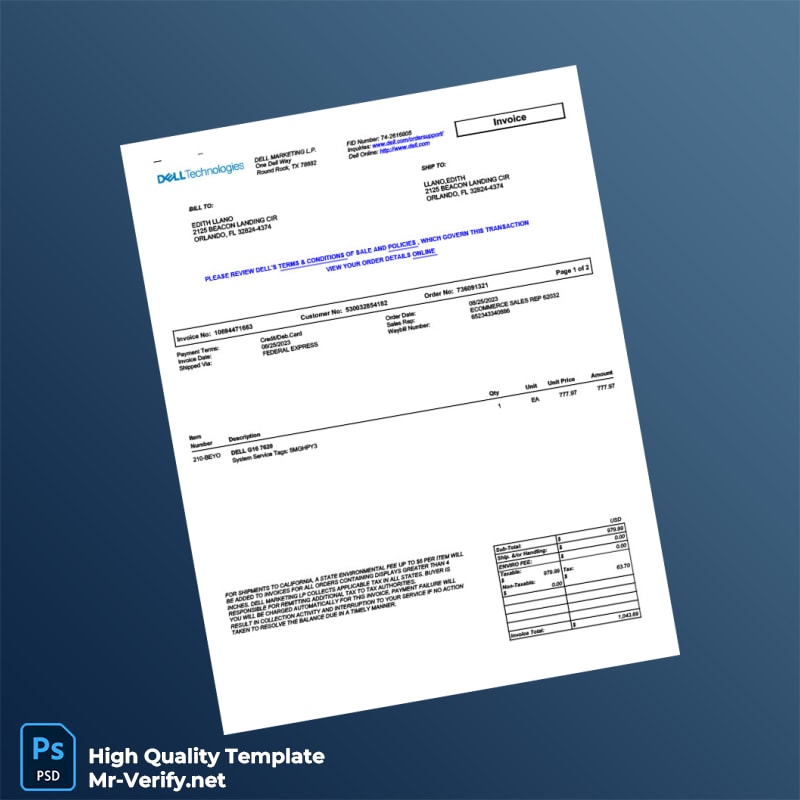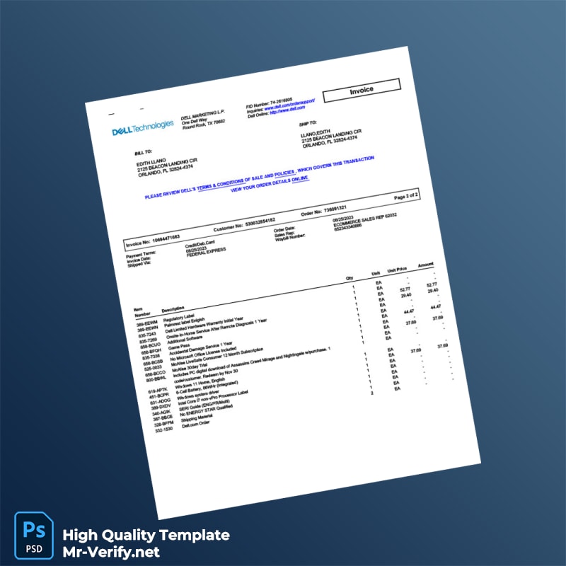 Designed specifically for professionals who require a quick replacement due to document loss, system errors, or expiry, the USA Dell Marketing L P Invoice Template is your dependable partner. For other geographic-specific needs or similar industries, explore related solutions such as the USA Amazon Invoice Template and the USA The Home Depot Invoice Template. Each offers tailored features to streamline your invoicing workflow further.