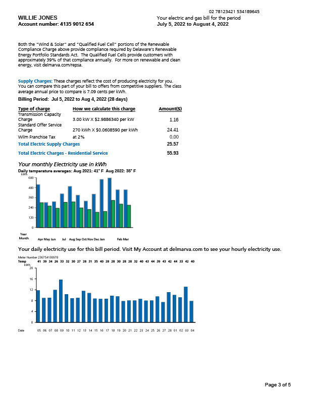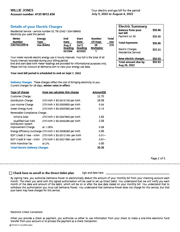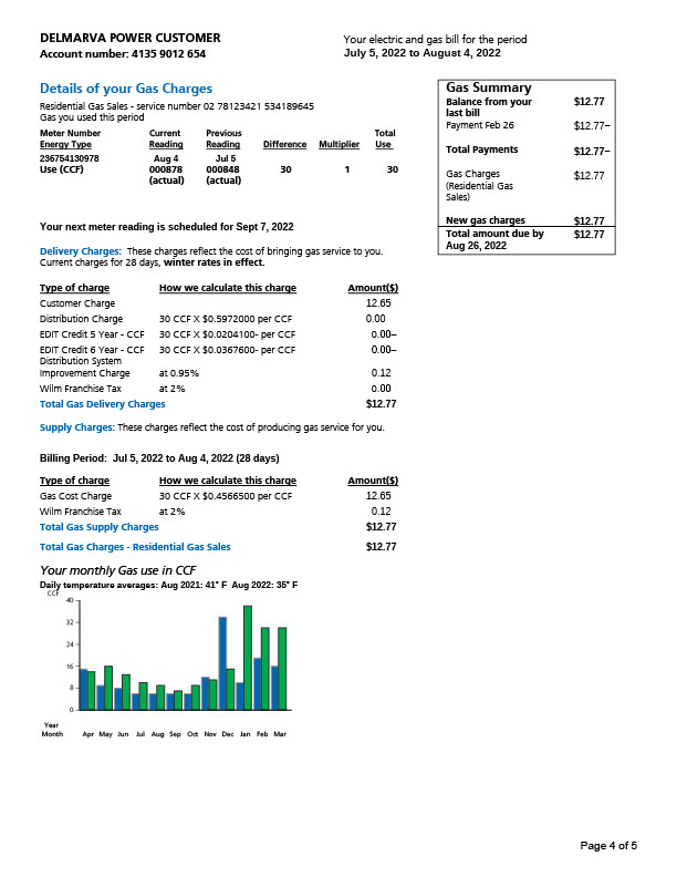 USA Delmarva Power Editable Electricity And Gas Bill Template in Word and PDF formats 5 page