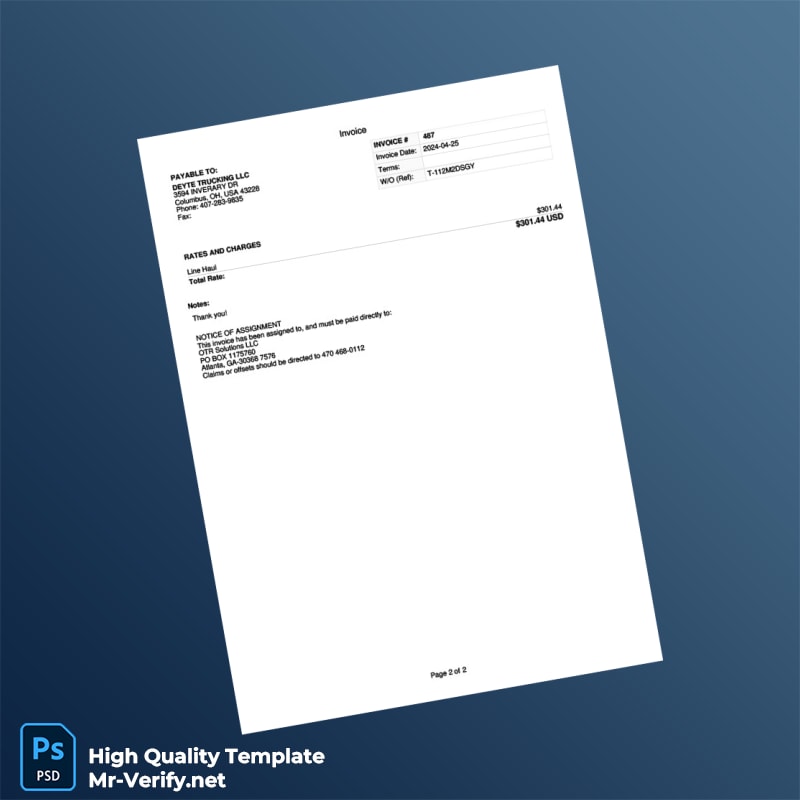 USA Deyte Trucking LLC Invoice Template in Word and PDF Formats